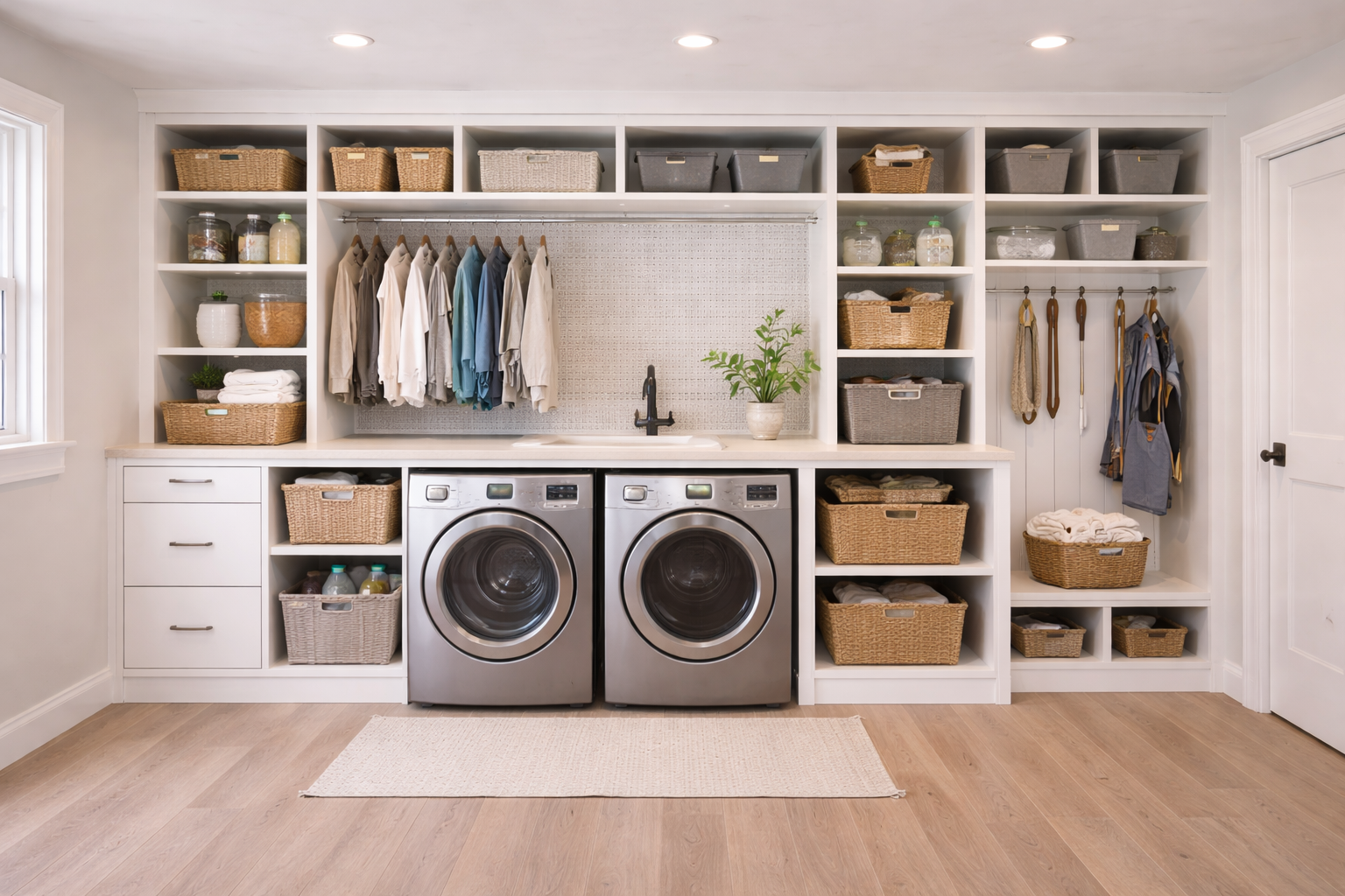 Many clients choose to complete multiple spaces at once, such as laundry rooms, closets, pantries, garages, mudrooms, and alcove cabinetry—saving time and coordinating everything in a single installation.